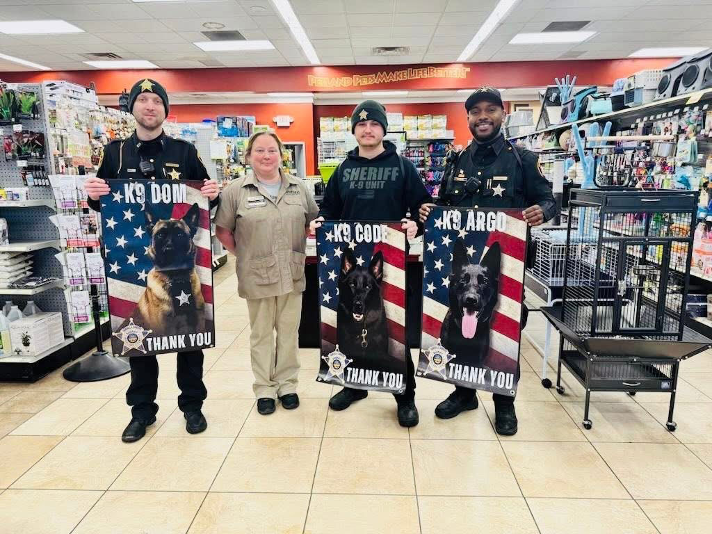 One such partnership, between Petland Hillsboro (OH) and the Highland County Sheriff’s Office, provided an amazing expression of its gratitude to Petland Hillsboro with banners featuring the Sheriff’s office K9s. The handsome trio of K9s now hang in the store.