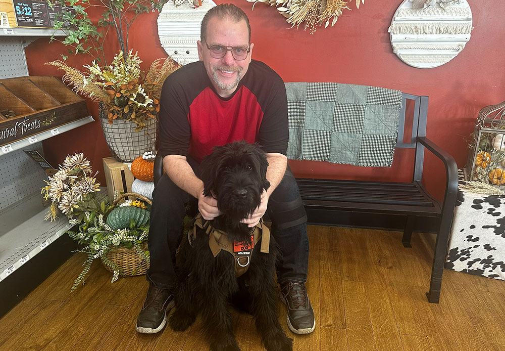 Air Force veteran Scott Fanelli, who lives with PTSD and a military-related brain tumor, has found daily support through his service dog, Elka, a Giant Schnauzer. Fanelli received Elka through Petland’s partnership with Heartland Canines for Veterans, after reaching out to Petland for help more than a year earlier. Recognizing the specialized training required for PTSD service dogs, Petland connected him with Heartland, whose founder, Jimmy Burgess, kept the team updated on Fanelli’s application.