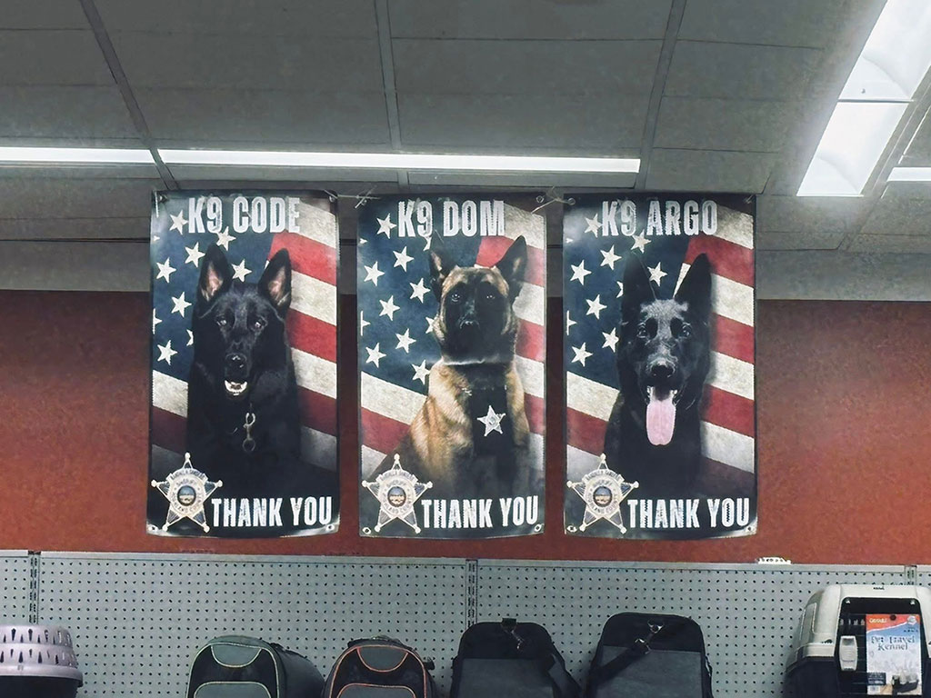 One such partnership, between Petland Hillsboro (OH) and the Highland County Sheriff’s Office, provided an amazing expression of its gratitude to Petland Hillsboro with banners featuring the Sheriff’s office K9s. The handsome trio of K9s now hang in the store.